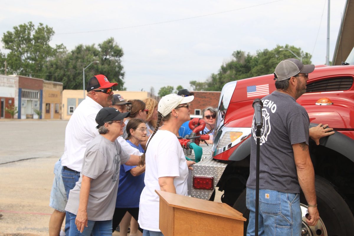 Community leaders, clergy, neighboring departments and city leaders were all present in Cleo Springs July 12, for a special ceremony to Christen the newest addition to the Cleo Springs Fire Department, a 2006 KME International heavy duty rescue truck.